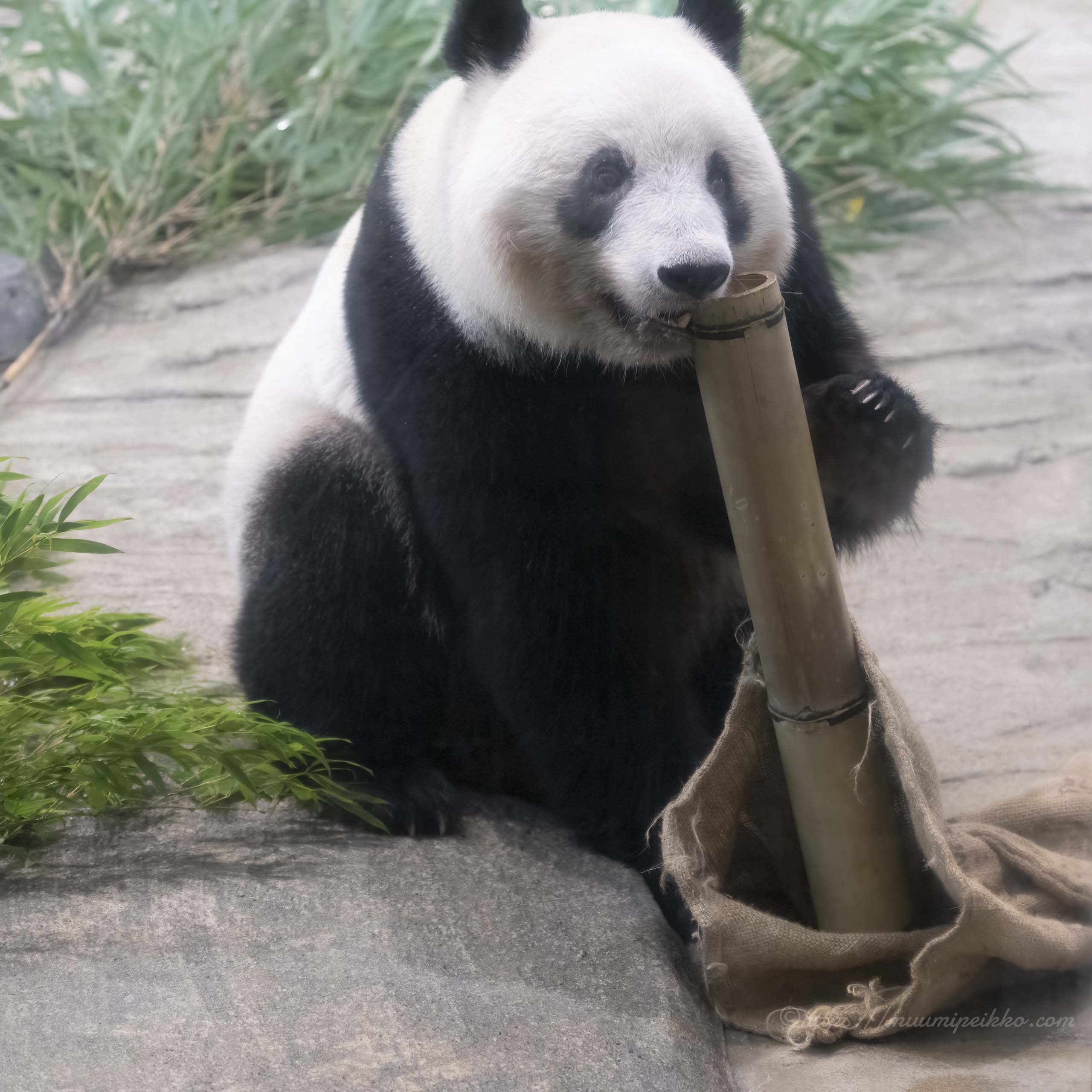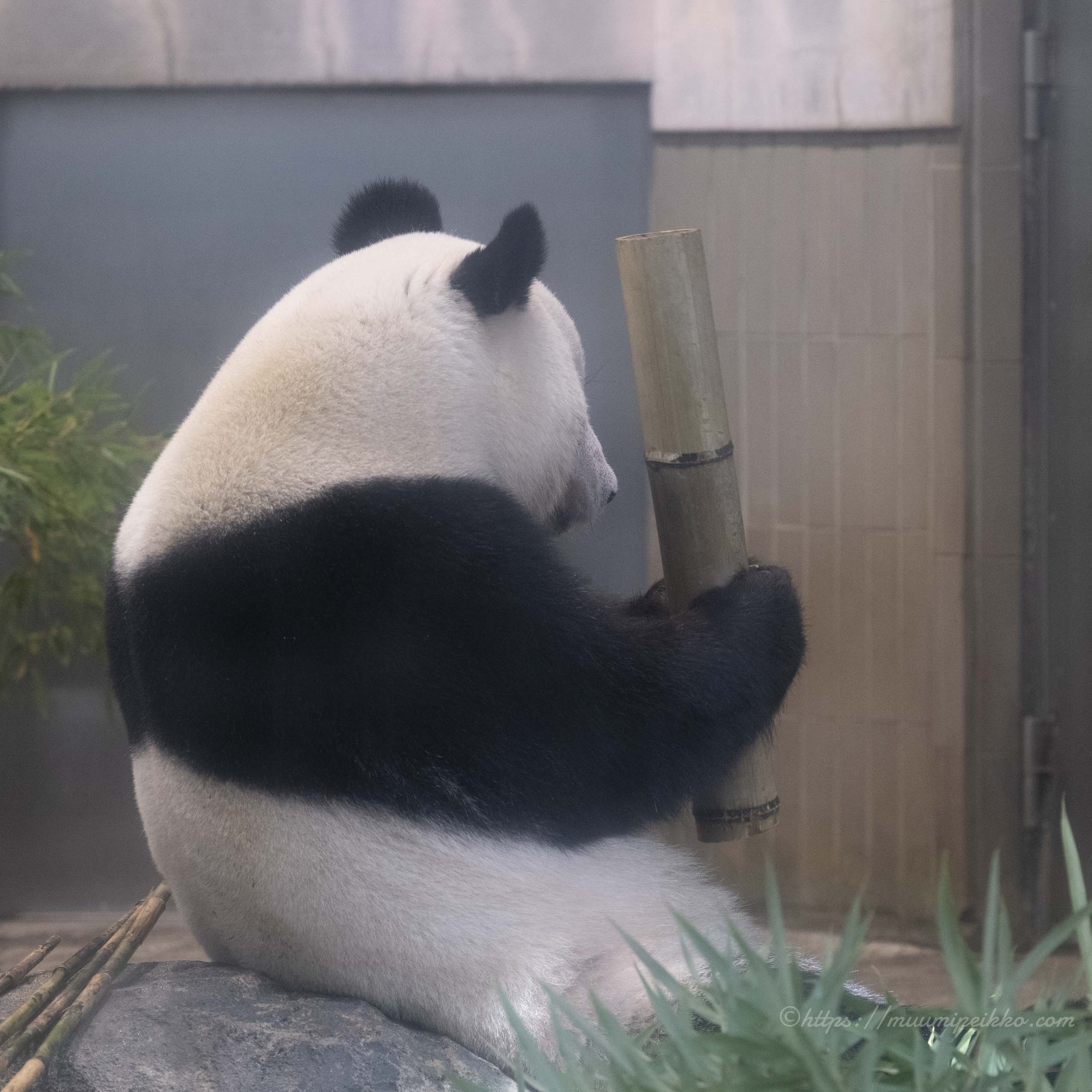 強い日差しの中、「もう暑いのよっ」というシンシンの心の声が聞こえてきました。